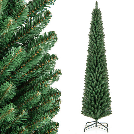 Pencil Christmas Tree with Memory Wire Branch Tips and Warm LED Lights-8FT