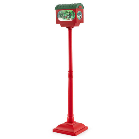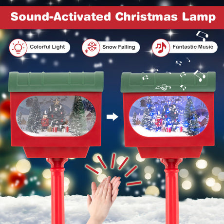 59 Inch Christmas Street Lamp with Sound-Activated Snow Globe Lantern-Red