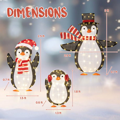 Light up Penguins Christmas Decorations with 194 LED Lights and Zip Ties