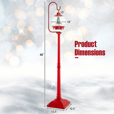 68 Inch Festive Musical Christmas Street Lamp Post with Snow Globe Lantern-Red