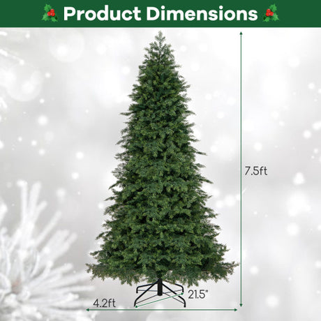 Artificial Christmas Tree Green Hinged Holiday Tree with 721/1019 Lush Branch Tips-7.5 ft