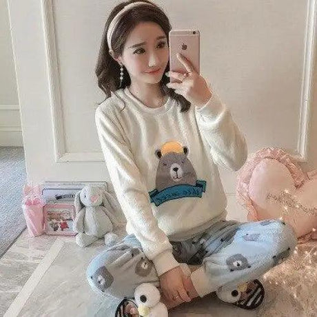 Newborn Boy Long Sleeve Bear Infant Hoodie Pant Tracksuit Set Pajamas For Kids In Bear Deisgn