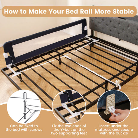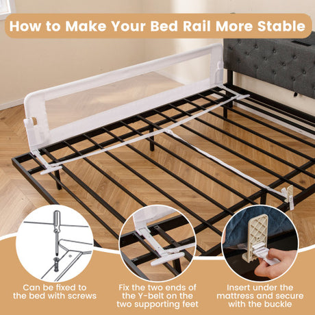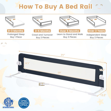 71-Inch Foldable Bed Rail Swing Down Baby Bed Guard Rail with Adjustable Safety Strap-Gray
