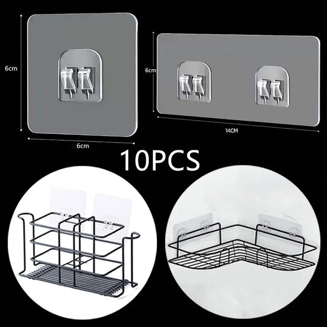 10PCS Transparent Self-Adhesive Wall Hooks for Kitchen & Bathroom Storage