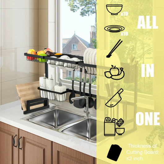 - Adjustable & Removable Parts: All the parts of this kitchen rack organizer are adjustable and removable according to your preference. Attention: Before purchasing it please measure the length of the sink (≤ 32.5in) and the height of the faucet from the countertop (≤ 17in).