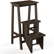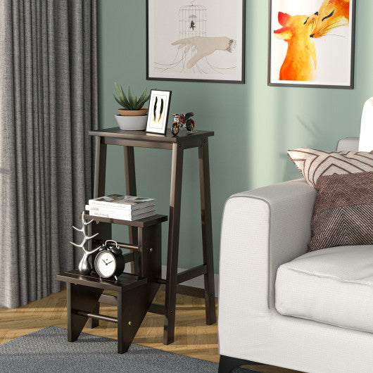 3-in-1 Rubber Wood 3 Tier Folding Step Stool Ladder Storage Shelf-Brown