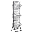This 3-tier market basket stand provides sufficient room to stock up on various items. It can organize vegetables and fruit in your kitchen classify snack bags in the living room assort laundry detergent near the washing machine not to mention store other sundries. The wire basket features a tilted hanging design for easy fetch and is easy to remove for independent use. It is easy to connect the frame and hang up the baskets then the assembly is finished! This fruit basket stand converts to 3 height forms --- 1-basket 2-basket and 3-basket which is an ideal organizing solution for specific needs. The stable triangle metal base and rounded corner will ensure safe use.