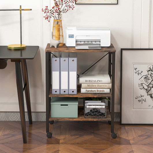 3-Tier Kitchen Baker's Rack Microwave Oven Storage Cart with Hooks-Rustic Brown