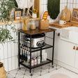3-Tier Kitchen Serving Cart Utility Standing Microwave Rack with Hooks Brown