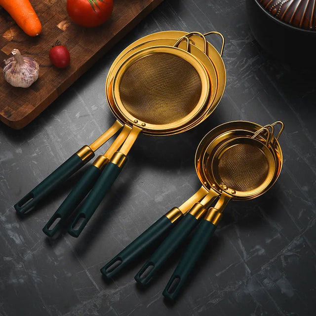Introducing the 304 Stainless Steel Kitchen Strainer with a Green Handle, your ultimate kitchen companion for effortless cooking and food preparation. Crafted from high-quality 304 stainless steel, this sieve skimmer colander ensures durability and resistance to rust, making it perfect for both indoor and outdoor use. Whether you're at home or on a camping trip, its lightweight design and ergonomic green handle provide a comfortable grip, ensuring ease of use. This versatile kitchen tool is ideal for straining pasta, rinsing vegetables, or skimming soups, offering unmatched practicality. Its fine mesh design guarantees efficient draining, while the sturdy construction withstands daily wear and tear. Elevate your culinary experience with this reliable, easy-to-clean kitchen strainer, designed for those who value quality and functionality. Perfect for travel, its compact size fits effortlessly into any kitchen setup. Enhance your cooking with the 304 Stainless Steel Kitchen Strainer Green Handle Sieve Skimmer Colander today!