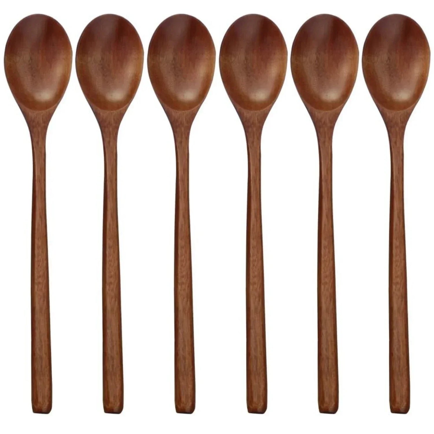 6-Piece Bamboo Wooden Spoon Set 9" Natural Wood Cooking & Mixing