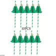 Christmas Tree Honeycomb Paper Straws - Green Tree & Gold Star Design for Holiday Celebrations