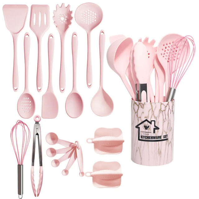 Pink 18Pcs Silicone Kitchen Utensils Set - Turner, Spatula, Measuring Spoon