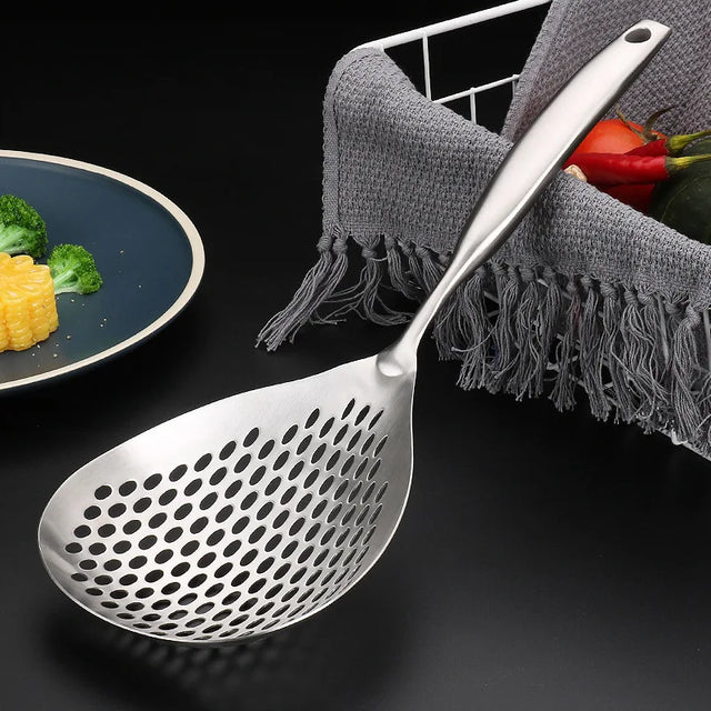 Introducing the Stainless Steel Colander Skimmer Mesh Sieve Oil Strainer Noodle Drainer Utensil, your ultimate kitchen companion for effortless cooking and straining. Crafted from high-quality stainless steel, this durable and rust-resistant tool is designed to withstand the test of time, ensuring long-lasting performance. Its fine mesh sieve efficiently strains oil, water, and other liquids, making it perfect for draining noodles, pasta, and vegetables. The ergonomic handle provides a comfortable grip, ensuring ease of use whether you're at home, camping, or traveling. Lightweight and compact, this versatile utensil is ideal for outdoor adventures and small kitchens. Its sleek design not only enhances your kitchen's aesthetic but also ensures easy storage. Elevate your culinary experience with this essential kitchen tool, perfect for both amateur cooks and professional chefs. Keywords: stainless steel colander, skimmer mesh sieve, oil strainer, noodle drainer, durable kitchen utensil.