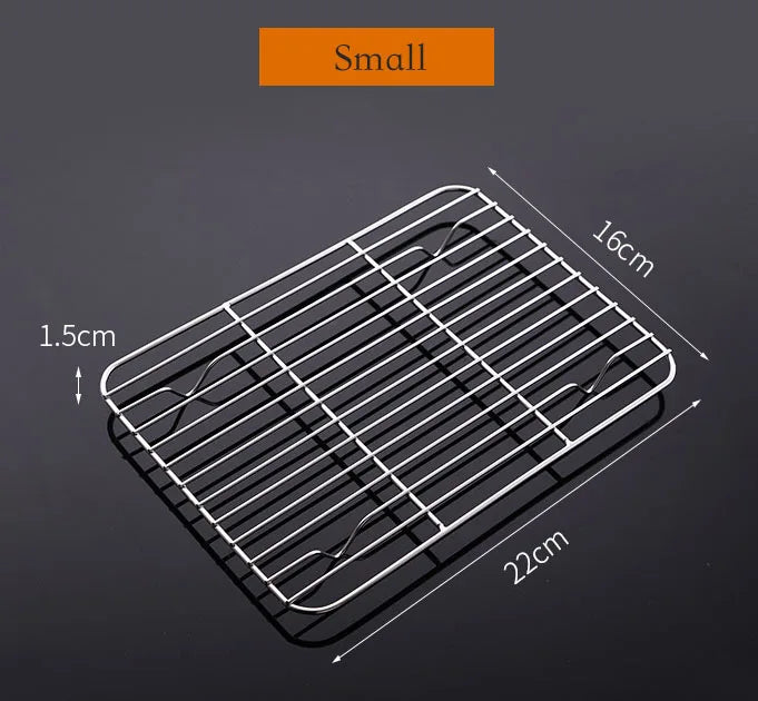 Introducing the Stainless Steel Non-stick Cooling Rack Baking Tray Pizza Grill Oven Shelf, your ultimate kitchen companion for versatile cooking and baking. Crafted from premium stainless steel, this durable rack ensures long-lasting performance and resists warping, making it perfect for home, outdoor, and travel use. Its non-stick surface guarantees easy food release and effortless cleaning, while the sturdy grid design allows for optimal air circulation, ensuring perfectly baked goods every time. Ideal for cooling cookies, grilling meats, or baking pizzas, this multifunctional rack fits seamlessly into any oven. Its compact, lightweight design makes it easy to transport, perfect for camping trips or outdoor barbecues. Elevate your culinary creations with this essential kitchen tool, designed for both amateur cooks and professional chefs. Enhance your cooking experience with the Stainless Steel Non-stick Cooling Rack Baking Tray Pizza Grill Oven Shelf, where quality meets convenience.