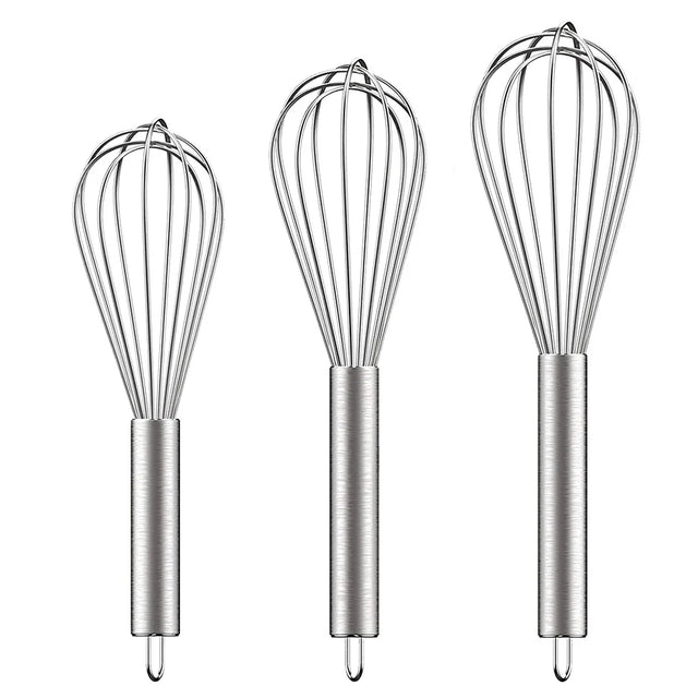 Introducing our Stainless Steel Whisk Set - 3 Pack, featuring 8, 10, and 12-inch balloon egg beaters, perfect for every kitchen task. Crafted from high-quality stainless steel, these whisks are designed for durability and long-lasting performance. Whether you're whipping up eggs, mixing batter, or stirring sauces, this versatile set is ideal for home, outdoor cooking, or travel. The ergonomic handles ensure a comfortable grip, making them easy to use for extended periods. Lightweight yet sturdy, these whisks are rust-resistant and dishwasher safe, ensuring effortless cleaning and maintenance. Perfect for chefs and home cooks alike, this whisk set is a must-have for any culinary enthusiast. Enhance your cooking experience with our Stainless Steel Whisk Set, combining quality, practicality, and style. Order now and elevate your kitchen tools with this essential set.