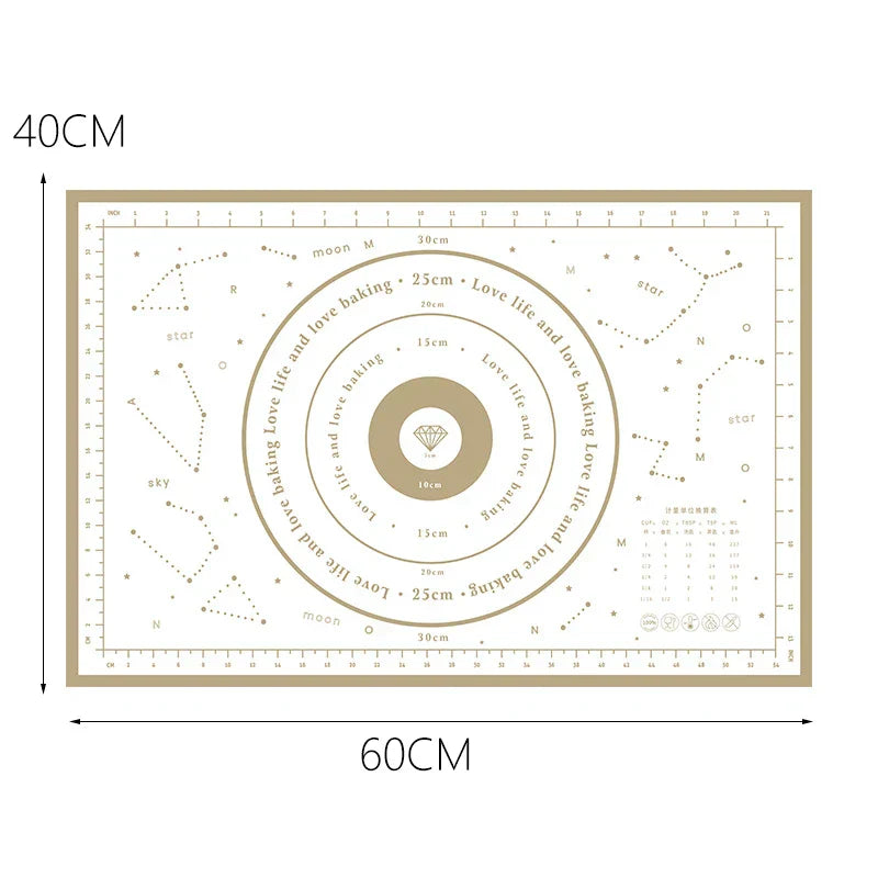 Introducing the Starry Sky Silicone Non-stick Baking Mat, your ultimate kitchen companion for perfect pizzas, pastries, macarons, and cakes. Crafted from premium, food-grade silicone, this baking mat ensures a non-stick surface, making cleanup a breeze and eliminating the need for parchment paper or cooking sprays. Its durable construction withstands temperatures from -40°F to 480°F, making it ideal for both home ovens and outdoor grills. Whether you're baking at home or on a camping trip, this versatile mat rolls up easily for travel, ensuring you can enjoy gourmet baking anywhere. The starry sky design adds a touch of elegance to your kitchen, while the mat's even heat distribution guarantees consistent results every time. Say goodbye to burnt edges and undercooked centers. Perfect for both amateur bakers and seasoned chefs, this silicone baking mat is a must-have for anyone looking to elevate their baking game. Enhance your culinary creations with the Starry Sky Silicone Non-stick Baking Mat, where quality meets convenience.