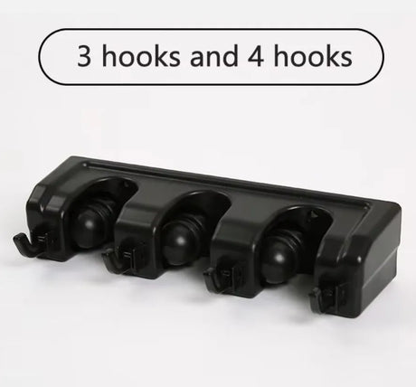 Wall Mounted 5 Position Broom Holder Black Mop Hanger Storage
