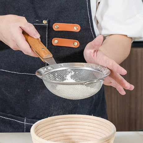 Stainless Steel Strainer with Wooden Handle - Potato Chips, Noodles, Flour Sieve