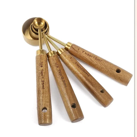 Wooden Handle Stainless Steel Measuring Cups and Spoons Set