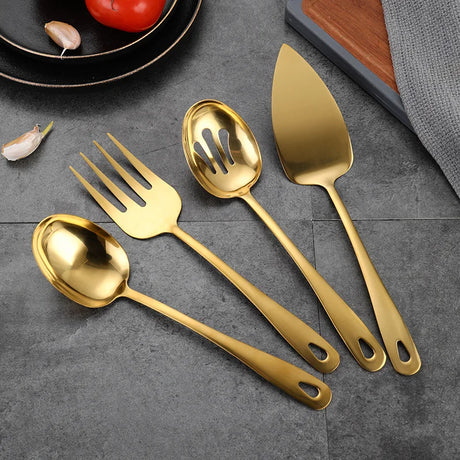 Stainless Steel Kitchenware Set: Soup Spoon, Long Handle Fork, Colander, Spatula, Buffet Cutlery