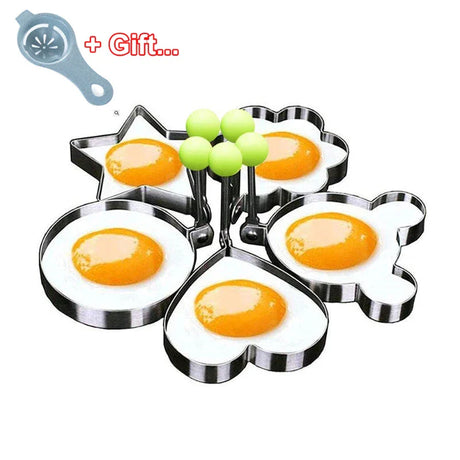 5pcs Stainless Steel Egg Mold Set: Round, Heart, Flower, Star, Mickey Shapes