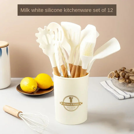 12-Piece Silicone Kitchen Utensil Set with Wooden Handles