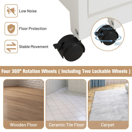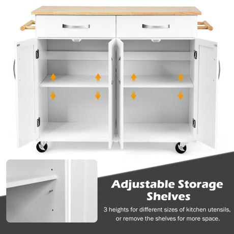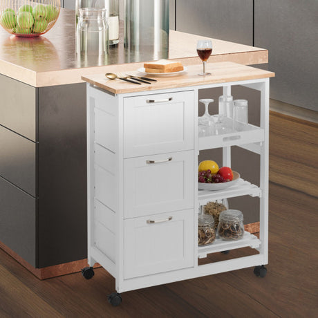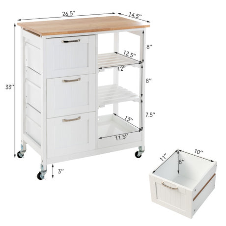 Wood Top Rolling Kitchen Trolley Island Cart Storage Cabinet-White
