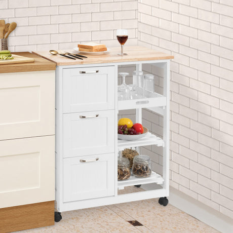 Kitchen Island Trolley Cart Wood Top Rolling Storage Cabinet-White