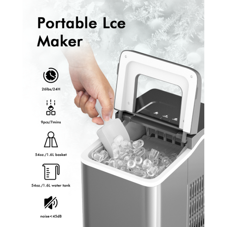 Portable Countertop Ice Maker Machine with Scoop-Silver