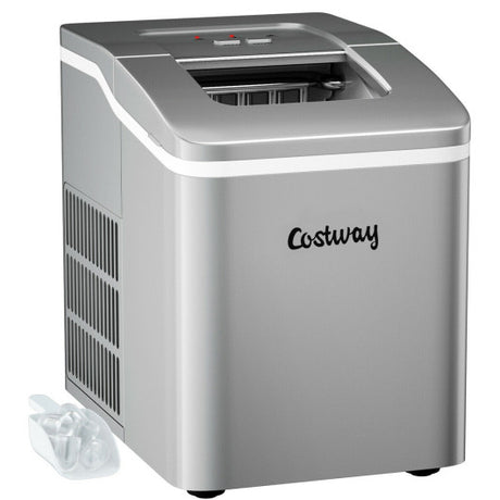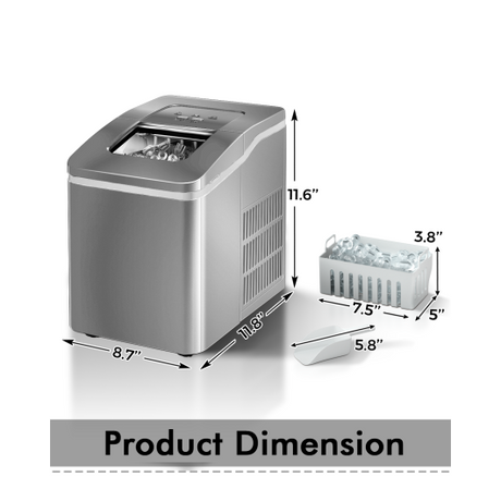 Electric Countertop Ice Maker with Ice Scoop and Basket-Sliver