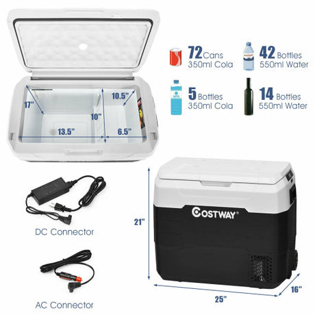 42 QT Portable Dual-Zone Car Refrigerator-White