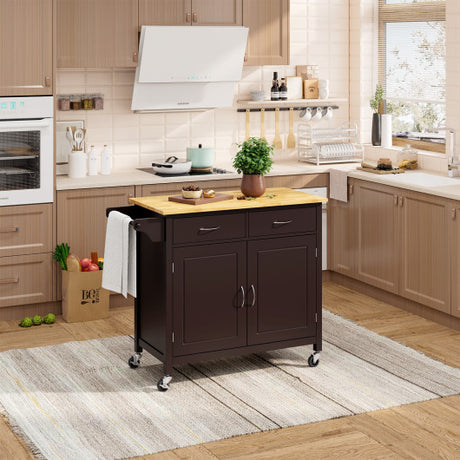 Kitchen Island Cart Rolling Serving Cart Wood Trolley-Brown