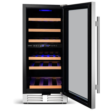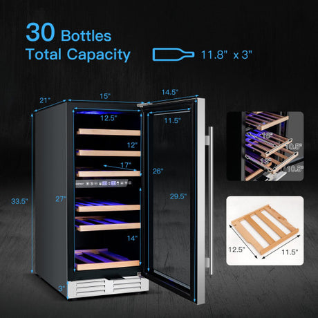 20 Inch Wine Refrigerator for 33 Bottles and Tempered Glass Door-Silver