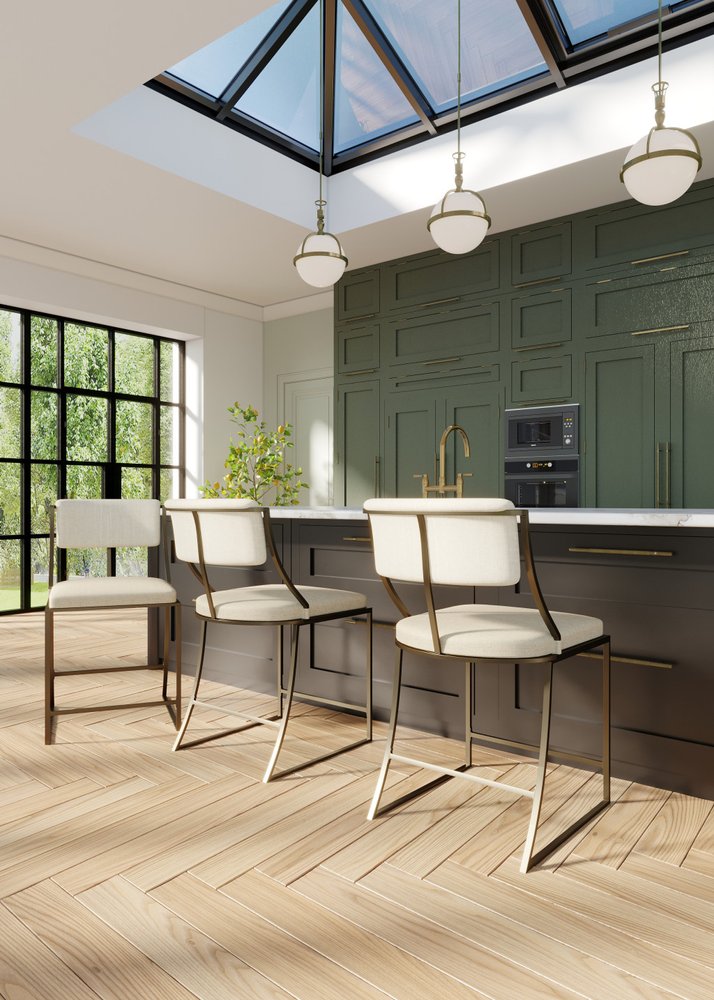 25" Beige And Antiqued Brass Steel Low Back Counter Height Bar Chair
