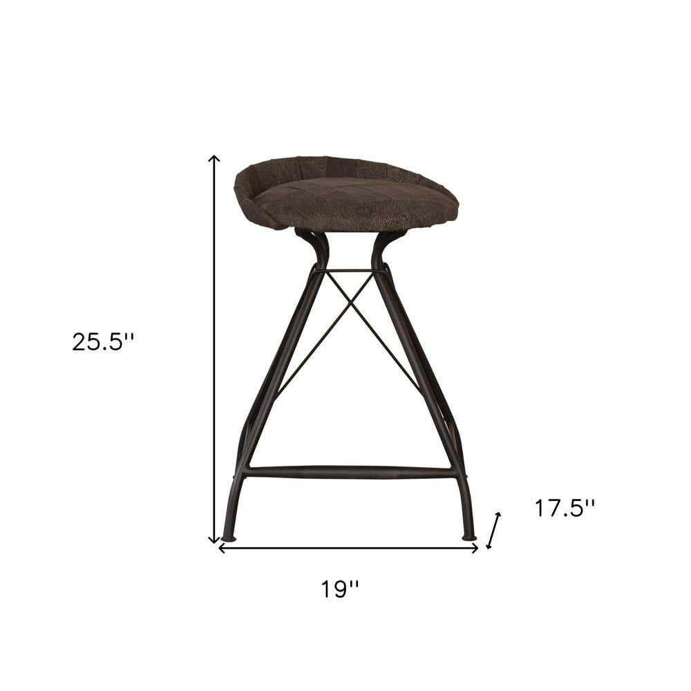 25" Brown and Black Leather and Iron Low Back Counter Height Swivel Bar Chair
