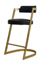 26" Black And Gold Faux Leather And Stainless Steel Low Back Counter Height Bar Chair