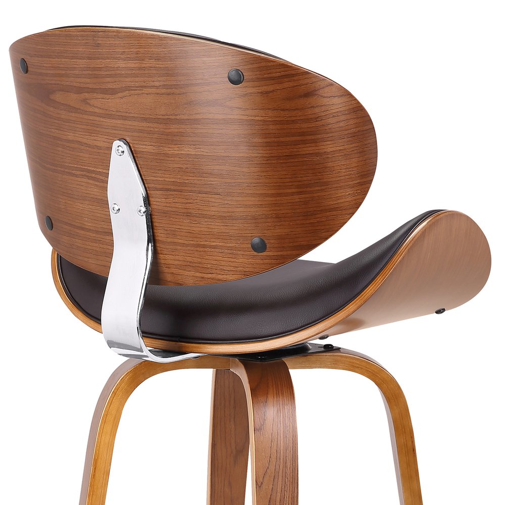 26" Brown Faux Leather And Iron Swivel Low Back Counter Height Bar Chair