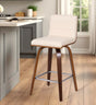 26" Cream and Brown Fabric and Iron Low Back Counter Height Swivel Bar Chair