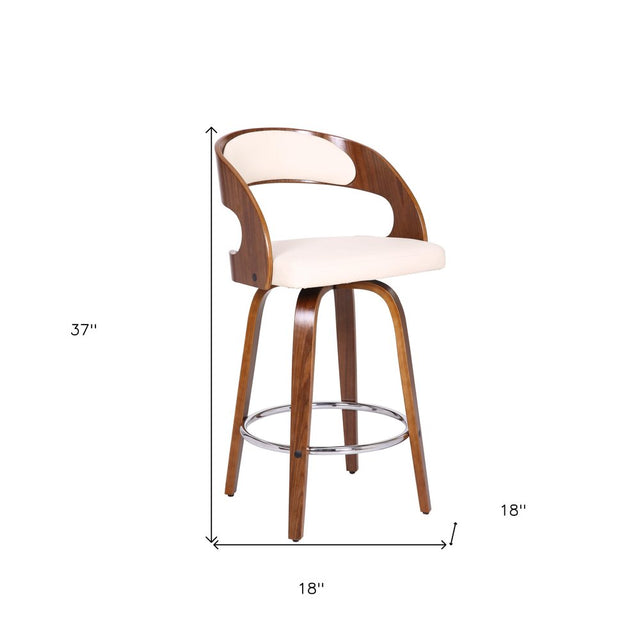 26" Cream And Brown Faux Leather And Iron Swivel Low Back Counter Height Bar Chair