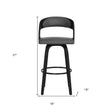 26" Gray And Black Faux Leather And Iron Swivel Low Back Counter Height Bar Chair