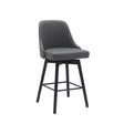 26" Gray and Black Faux Leather with Solid Wood Swivel Counter Height Bar Chair