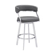 26" Gray and Silver Faux Leather and Iron Low Back Counter Height Swivel Bar Chair
