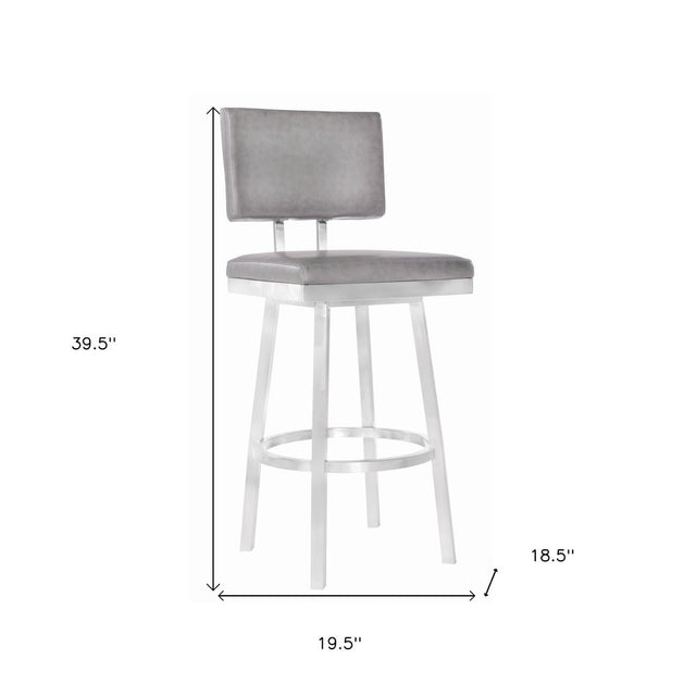 26" Light Gray And Silver Iron Swivel Counter Height Bar Chair
