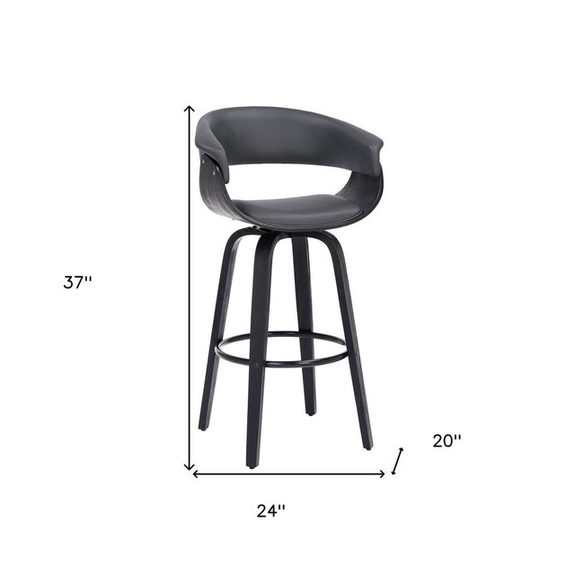 27" Gray And Black Faux Leather And Solid Wood Swivel Low Back Counter Height Bar Chair