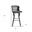 29" Gray And Black Faux Leather And Iron Swivel Low Back Bar Height Bar Chair