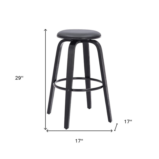 29" Gray And Black Solid Wood Swivel Backless Bar Height Bar Chair