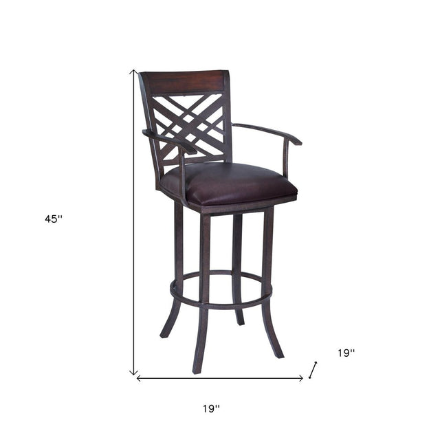 30" Brown Faux Leather And Iron Bar Height Bar Chair