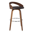 30" Brown Faux Leather and Solid Wood Low Back Bar Height Swivel Bar Chair