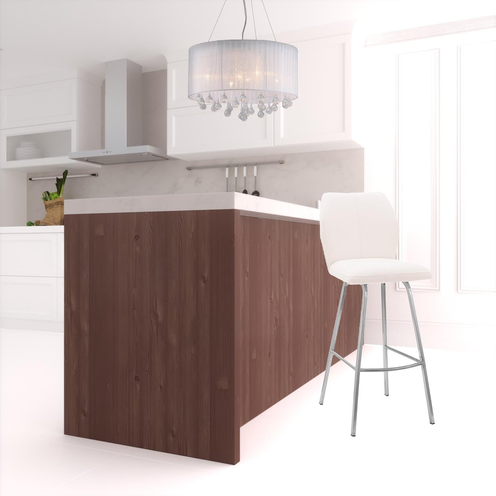 30" White And Silver Faux Leather And Iron Bar Height Bar Chair is backordered and will ship as soon as it is back in stock.